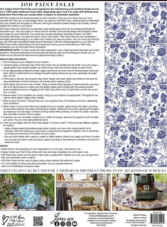 Iron Orchid Designs Indigo Floral Paint Inlay 12" x 16" pad