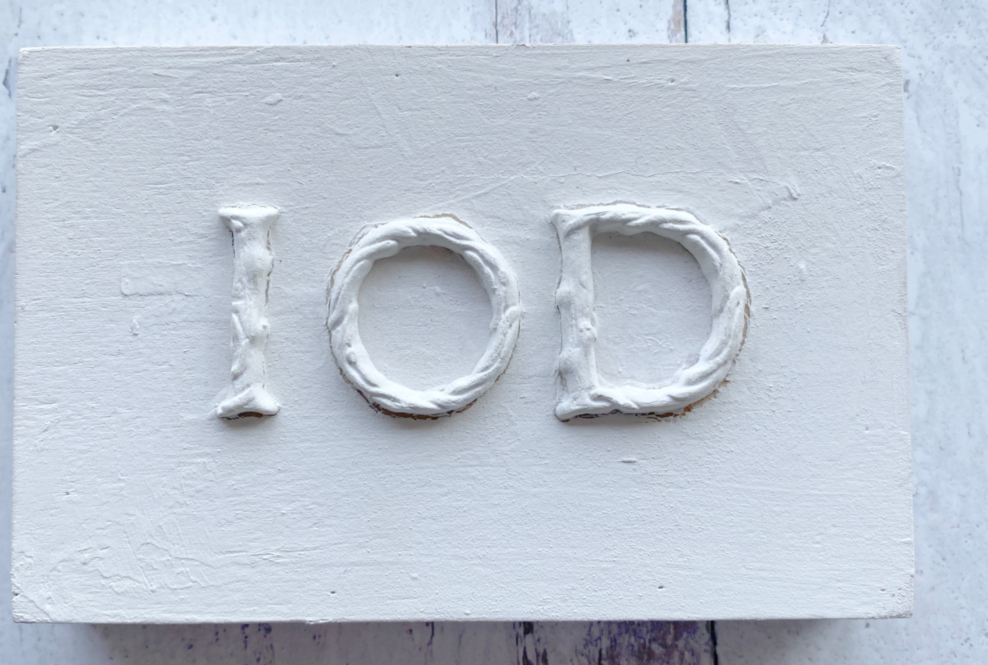 Air dry clay, or paper clay: IOD paper clay is an air dry medium, and one of our favorites. Like most paper pulp based air dry clays, some shrinking, warping, and cracking is inherent. We like these qualities for a distressed, authentically vintage look. Our favorite way to apply moulded pieces is to remove them from the mould while still moist and adhere to the surface with the appropriate glue so it conforms well. For vertical surfaces, use a piece of low tack tape to hold it in place so it doesn’t slide.