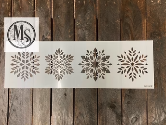 One stencil with all 4 snowflakes, approx 5.5"h on an 8" x 24" stencil