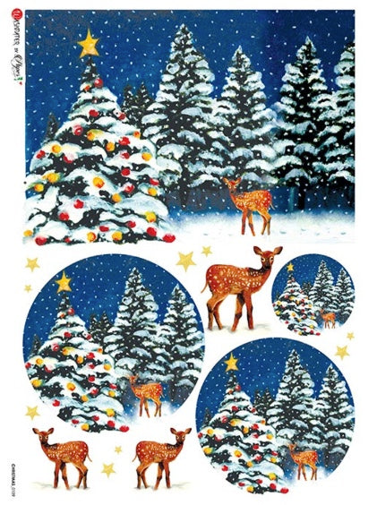 Paper Designs Rice Paper: Christmas 0109 Snowy Trees and Reindeer